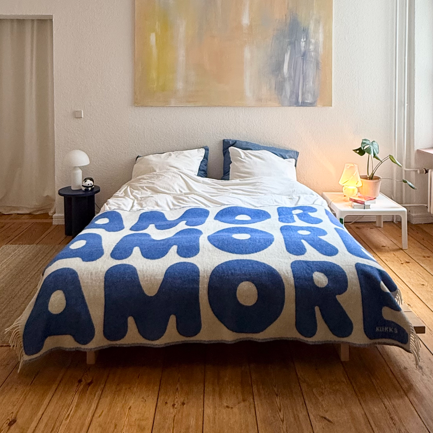 Unsere ikonische AMORE Decke strahlt jetzt in einem leuchtenden Königsblau - bold, cozy und einfach zum Verlieben.