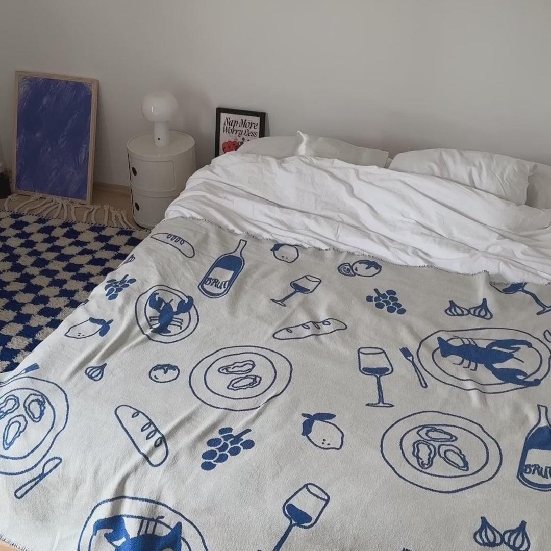 This blanket is for our foodies out there! With its elegant combination of royal blue and off-white, Klekks No. 16 will make you feel like royalty 👑🦪🍾💙 Absolutely combinable and super chic!