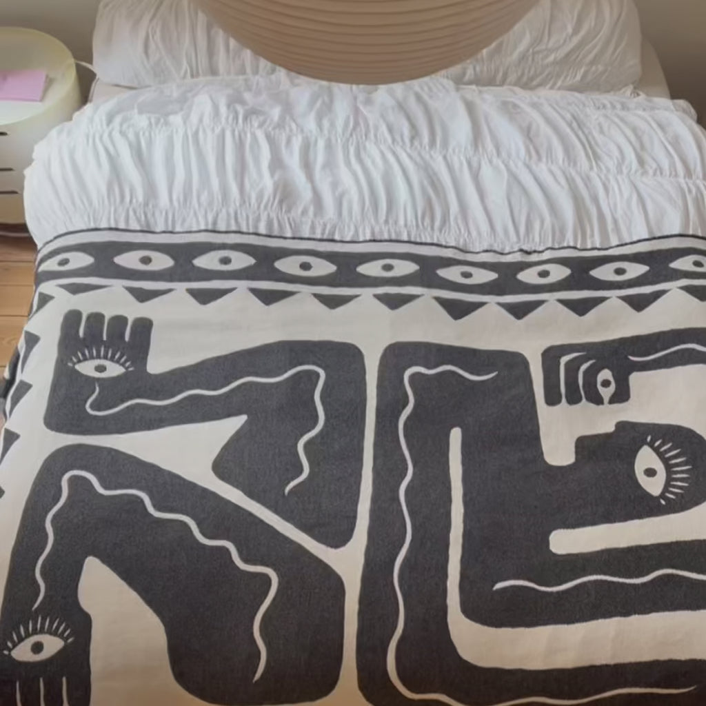 Klekks No. 26 bringt einen stillen Wächter in dein Wohnzimmer, umgeben von schützenden Augen und geheimnisvollen Symbolen. In kontrastvollem Schwarz-Weiß bringt sie Ruhe, Präsenz und ein spiritueller Touch in dein Zuhause. Ein Statement Piece der anderen Art ✨👁️