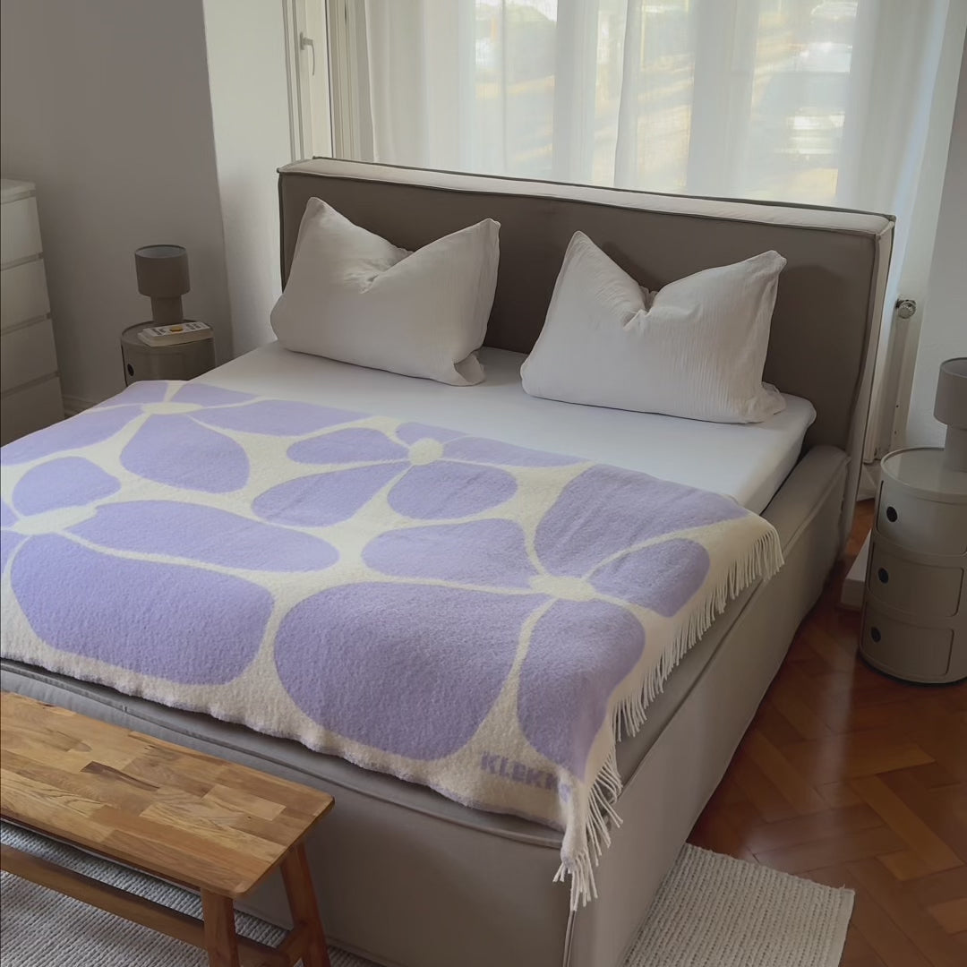 Let it bloom! Creme trifft Lila und die gute Laune kommt von selbst. Klekks No. 32 ist cozy, warm und bringt Flower Power direkt auf dein Sofa 💜